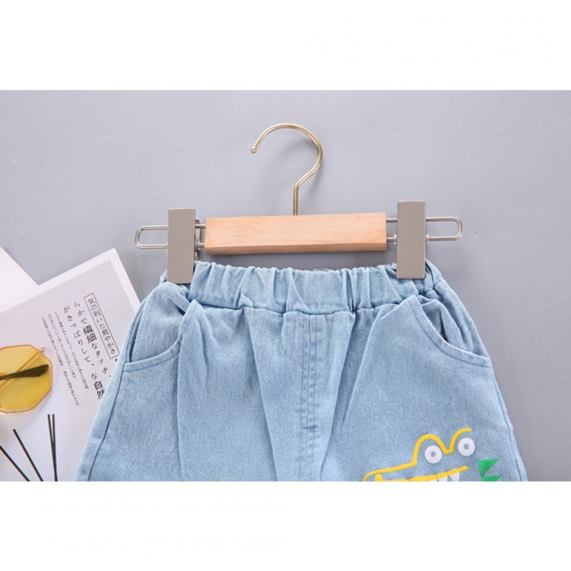 Boy’s / Girl’s Cotton Elastane Full Length Washed Denim Jeans With Dino Print