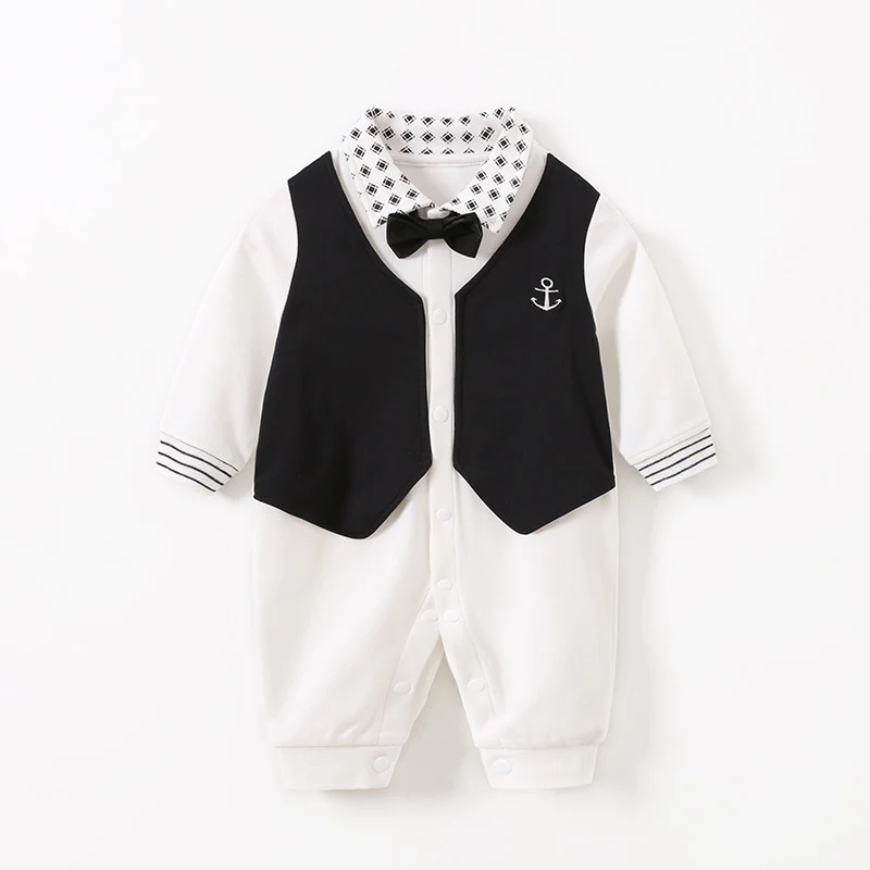 Cotton Full Sleeves Party Wear Romper with Attached Waistcoat & Bow