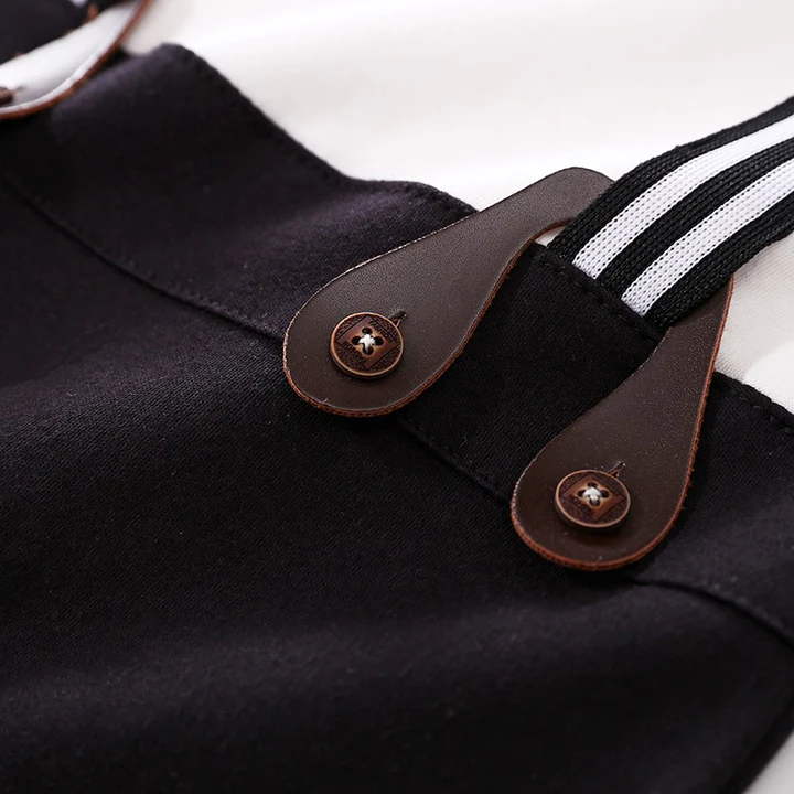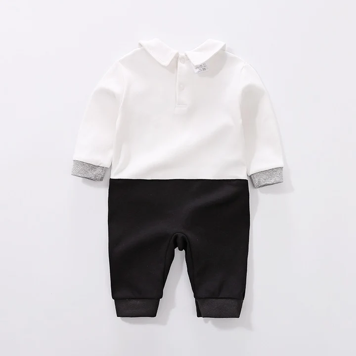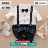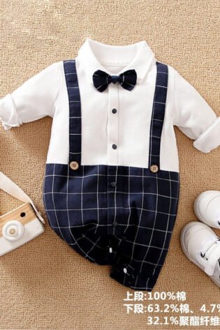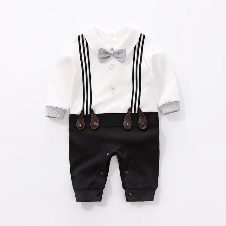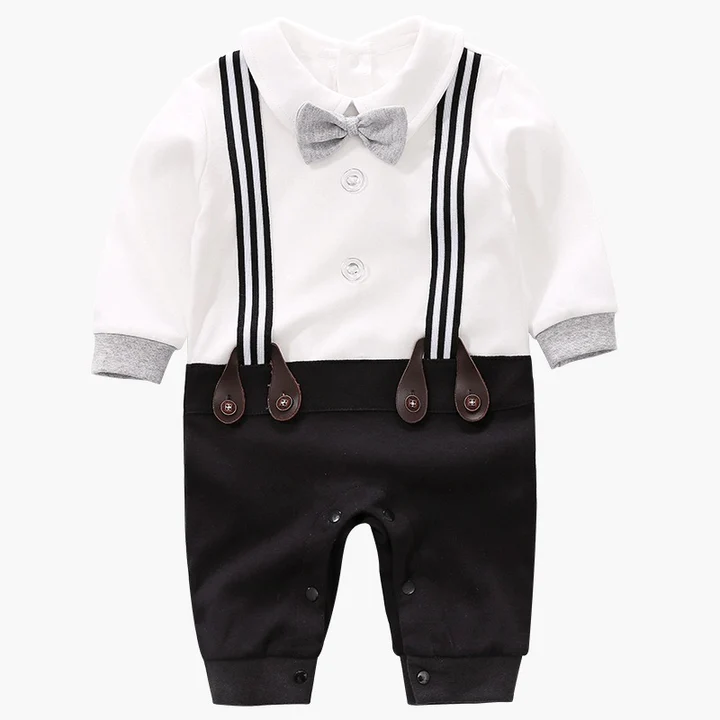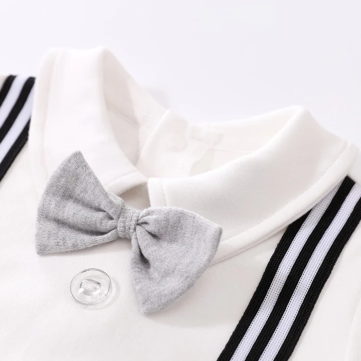 Full Sleeves Suspender Print Party Romper With Bow Tie Solid
