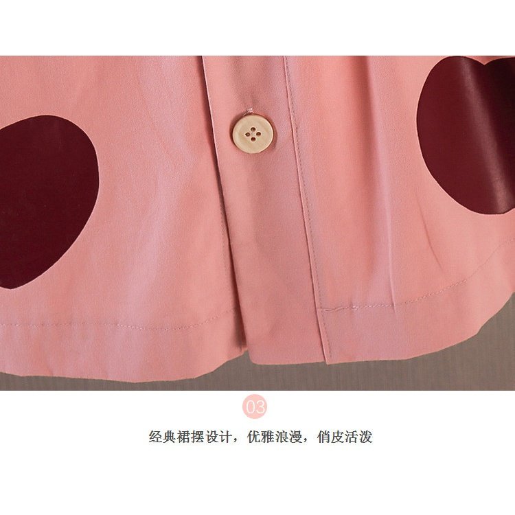 Girl’s Korean Style Frill Cuff Long Sleeve Round Collar Neck With Frill Detailing Heart Print Frock