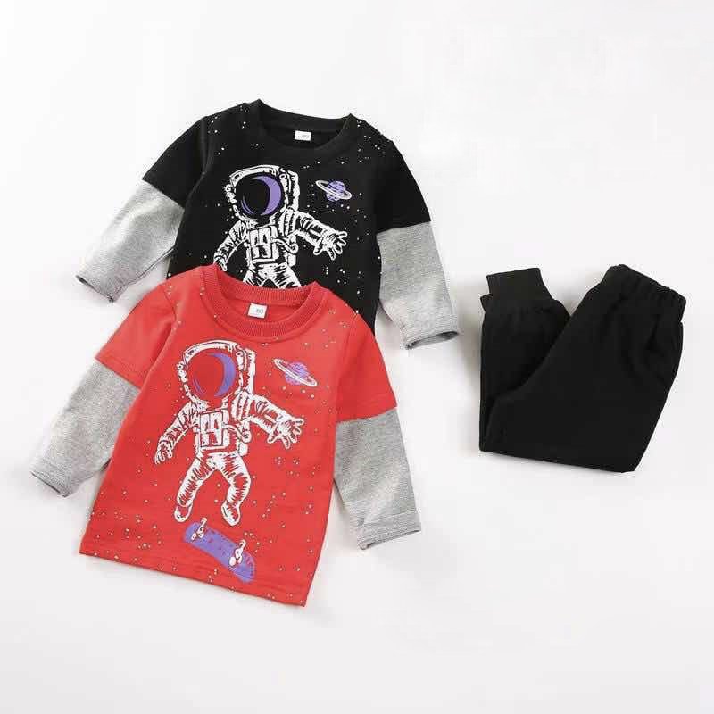 Boy’s Cotton Full Sleeves T-Shirt & Lounge Pant Set Astro Print