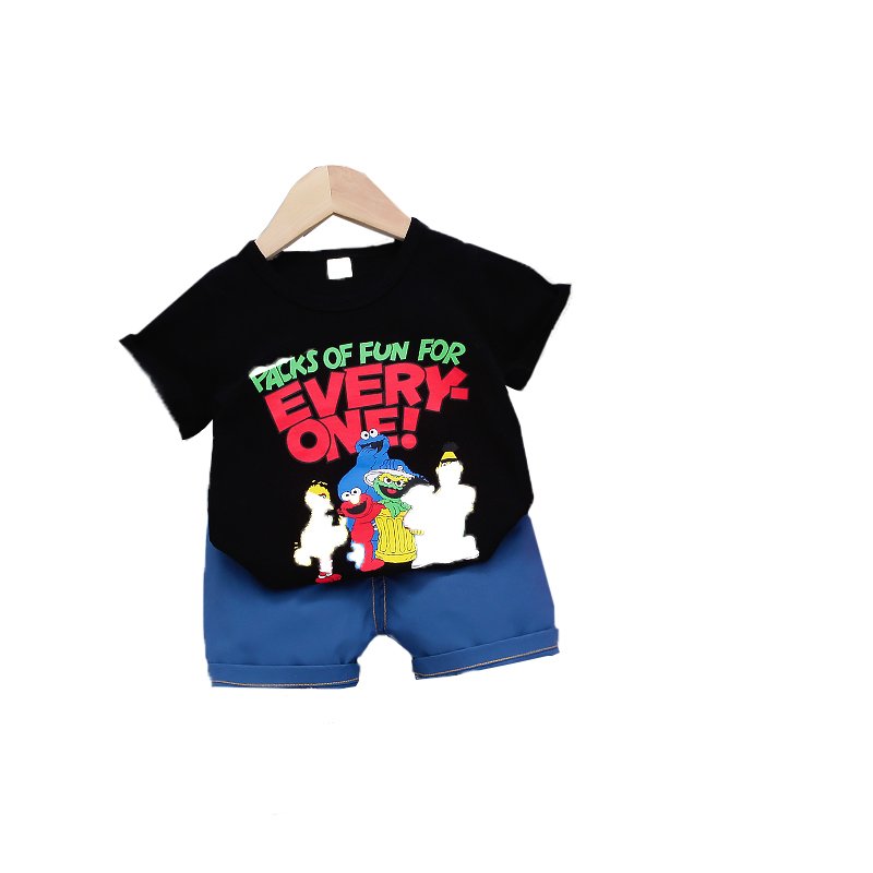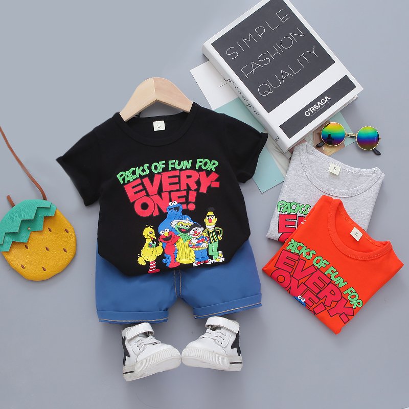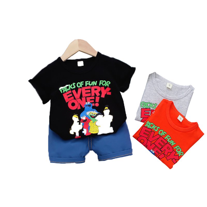 | color | Black T-Shirt And Blue Shorts, Grey T-Shirt And Blue Shorts, Orange T-Shirt And Blue Shorts |