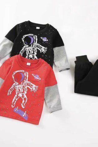 Boy’s Cotton Full Sleeves T-Shirt & Lounge Pant Set Astro Print