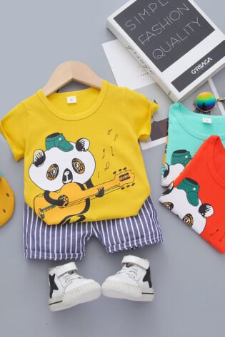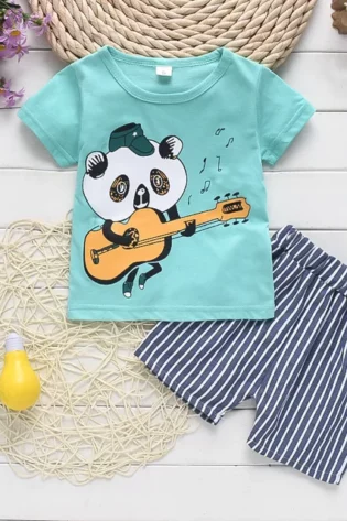 Round Neck Half Sleeve Set Panda Print